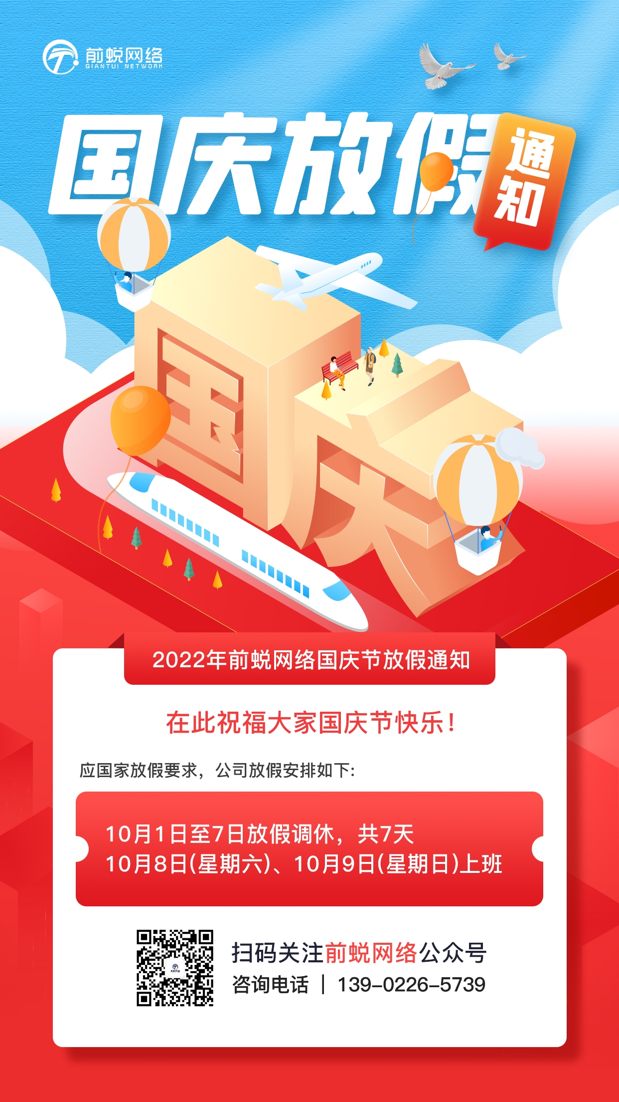 前蜕网络-国庆放假通知